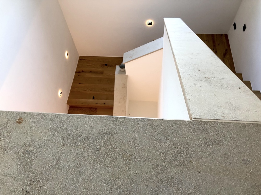 Ästhetische Stiegenbrüstung mit Abdeckung aus Kalkstein